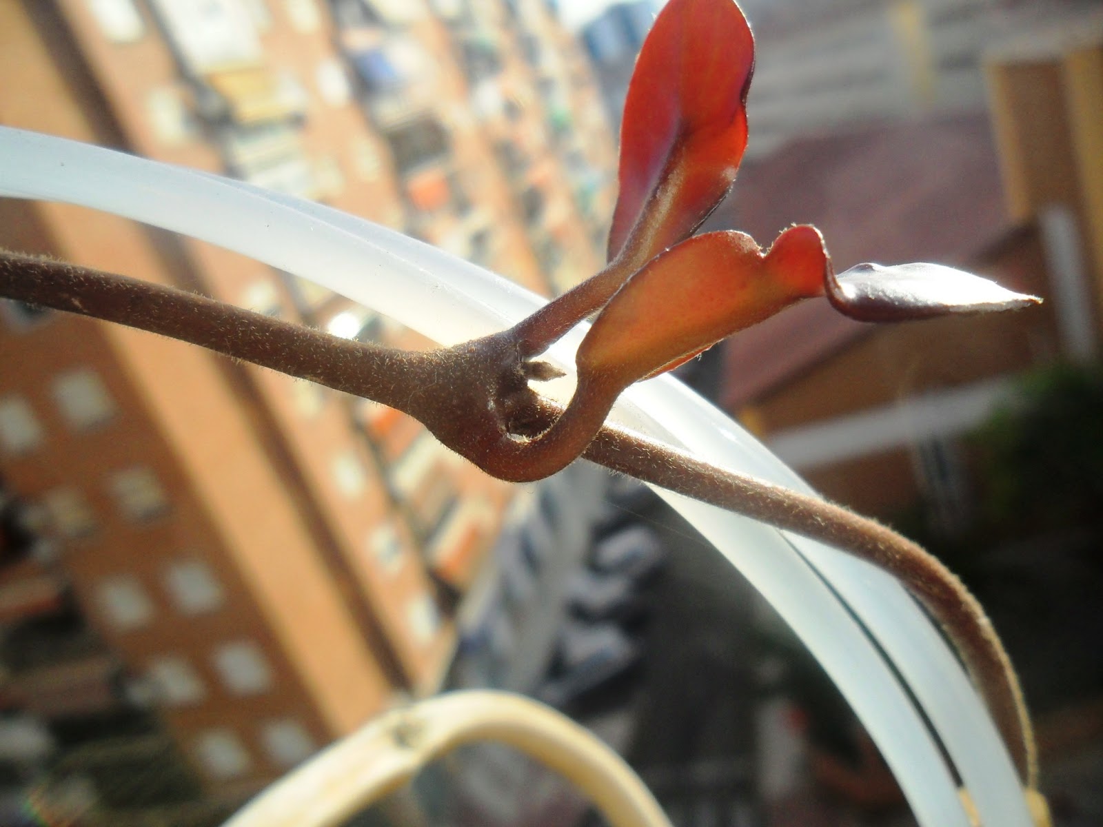 ya formadas no superan los 8 x 4 cms. He de aclarar que las hojas formadas mientras estuvo a la sombra hasta enraizar (lo que hago siempre) alcanzan en algunos casos los 11 x 4,5 cms.